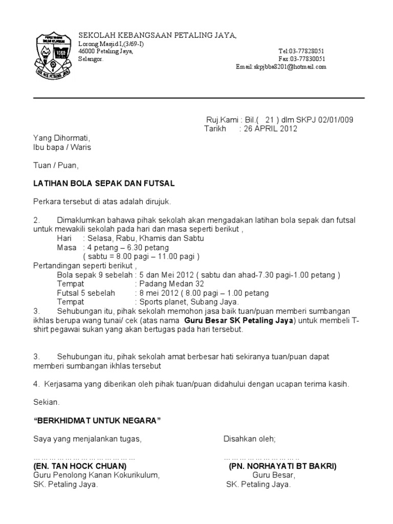 Contoh surat mohon sponsor pasukan bola sepak. Carta organisasi kelab sukan dan permainan penasihat pengetua abdullah b. Minit mesyuarat kelab bola sepak kali pertama 2013 tarikh.